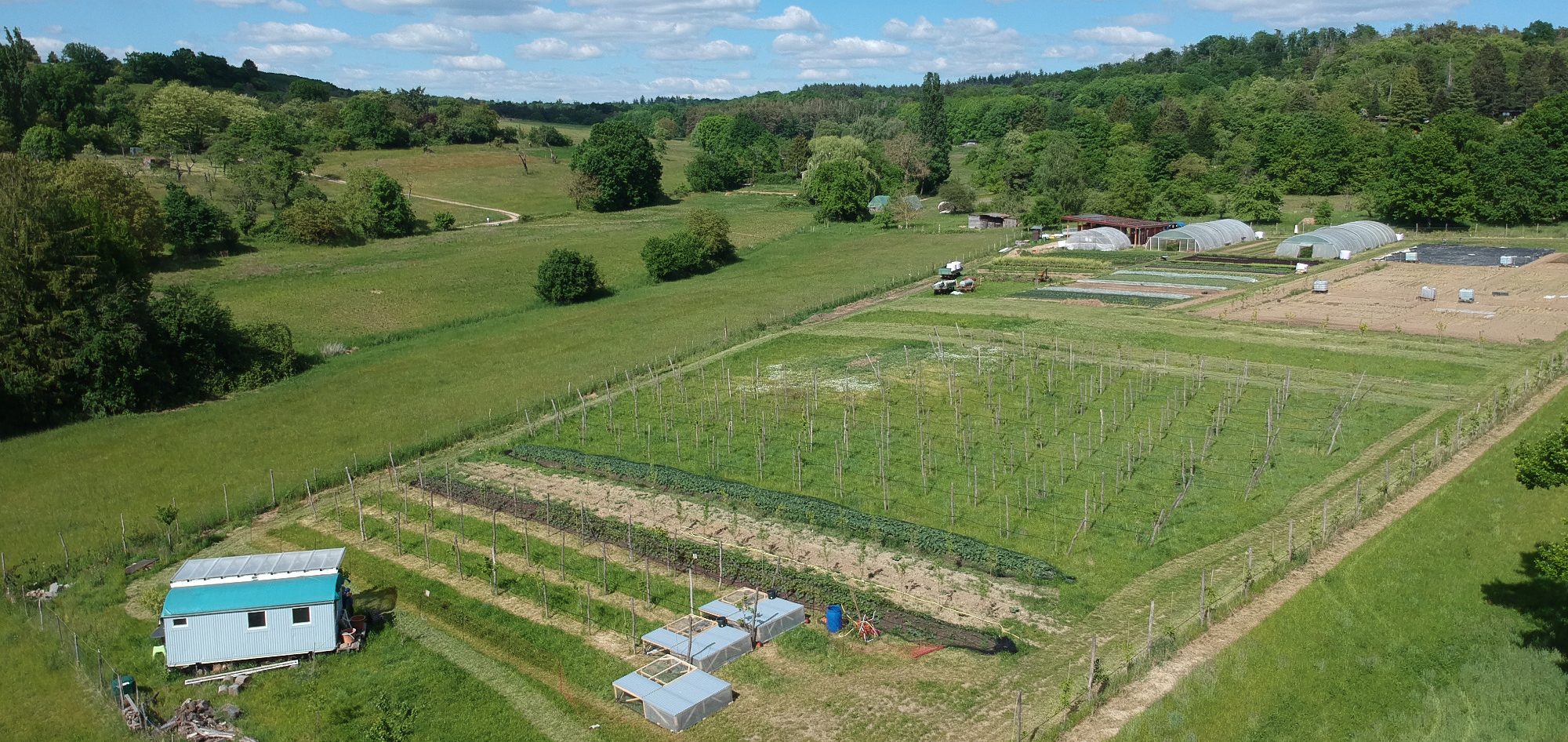 Unsere Mobilställe werden jeden Tag versetzt - so haben die Hähnchen täglich