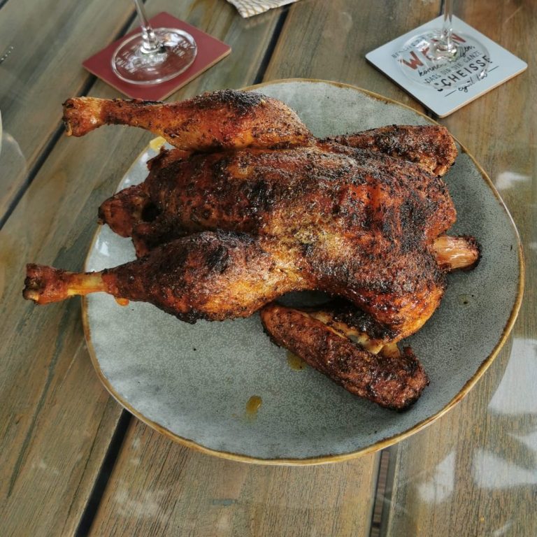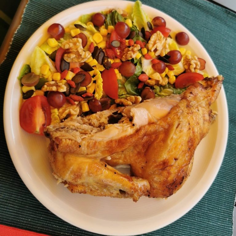 Das Hähnchen war lecker und saftig. Von der Menge haben wir auch morgen noch was davon.